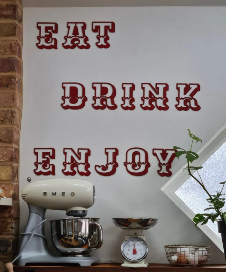 You can use a good adhesive, weight appropriate Command Strips ( sticky pads), hang on a hook or drill straight through and secure with a screw for a more permanent fixing. Some of the letters will simply prop up against a wall, which look great on a sideboard or shelf.