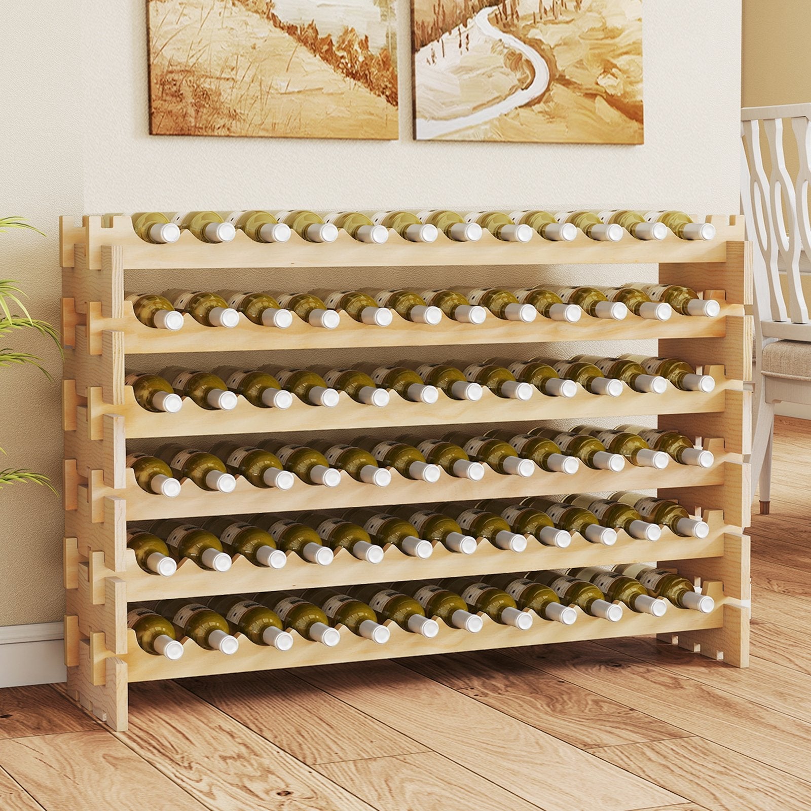 72 Bottles Wine Rack 6-Tier Stackable Wine Storage Stand with Solid Wood Frame-Natural