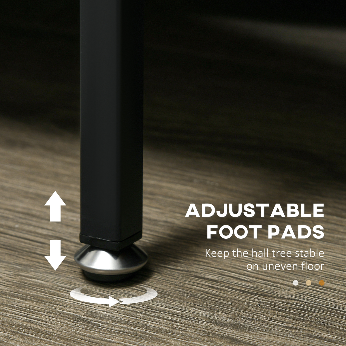 HOMCOM Coat Rack, Coat Stand with Shoe Storage, 5 Hooks for Hallway, Brown