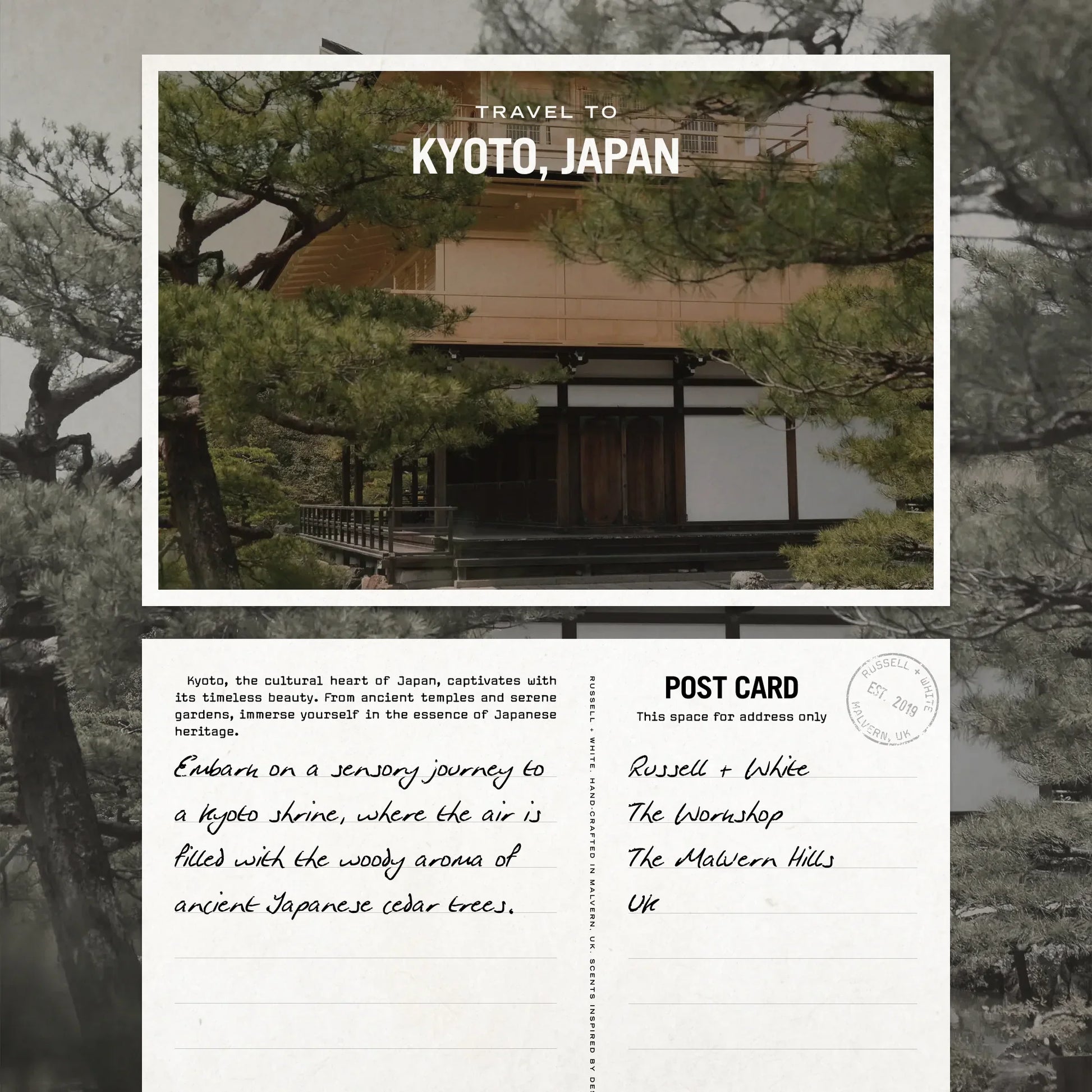 Embark on a sensory journey to a Kyoto shrine, where the air is filled with the woody aroma of ancient Japanese cedar trees.