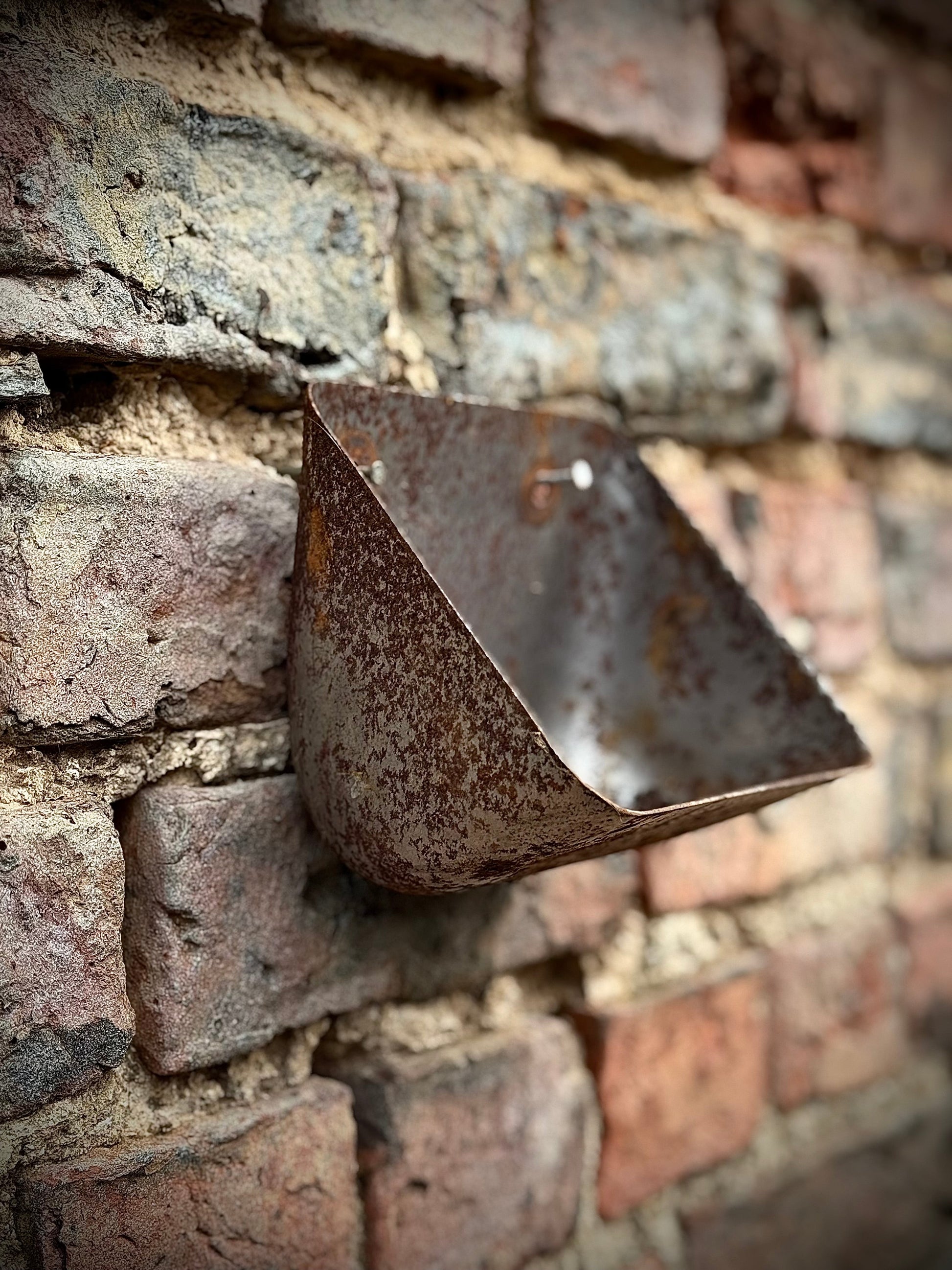 Add a touch of vintage charm to your garden or patio with this rusty metal wall mounted planter.