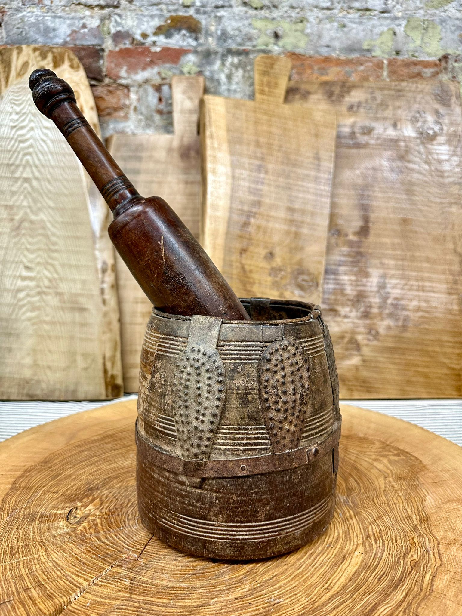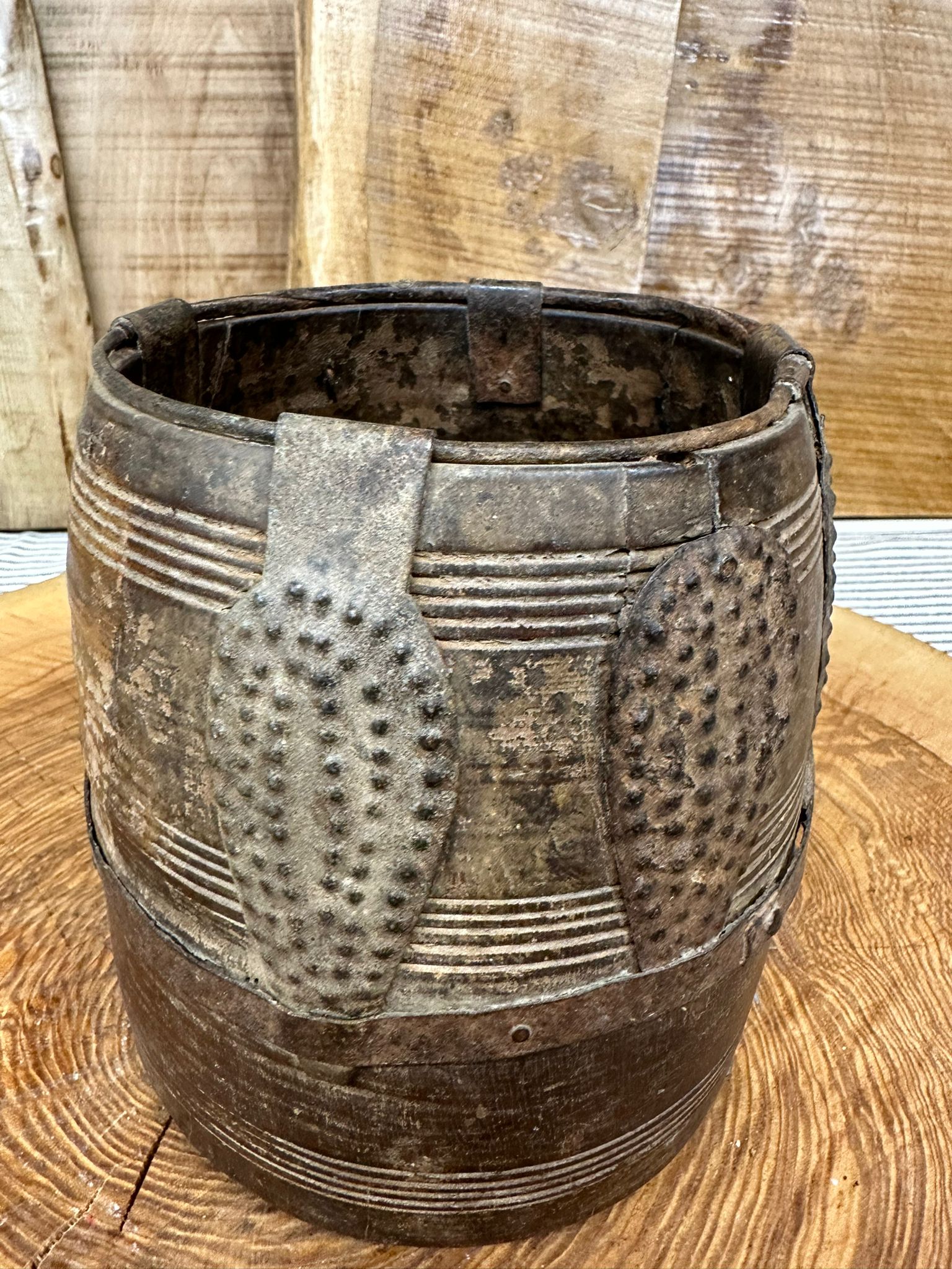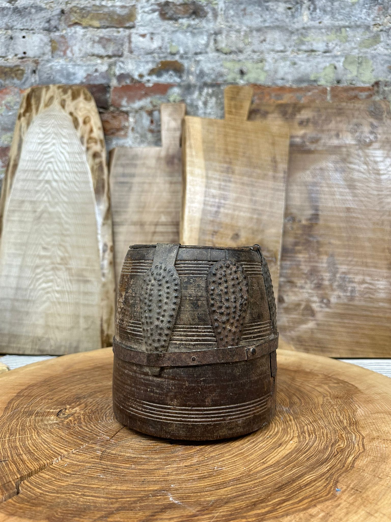 This old handmade wooden storage pot has been sourced from India and is perfect for keeping your kitchen organised. Could be used as storage space for your herbs, plants, stationary or cutlery.
